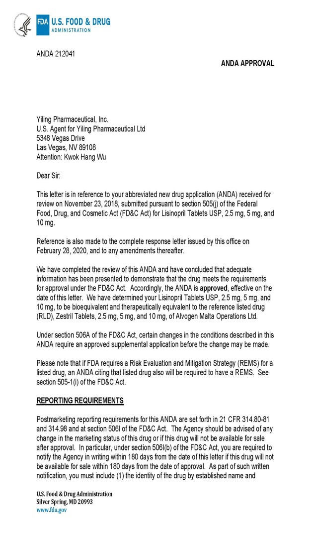 Hypertension: Initial adult dose is 10 mg once daily. Titrate up to 40 mg daily based on blood pressure response. Initiate patients on diuretics at 5 mg once daily.